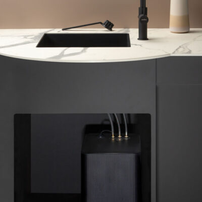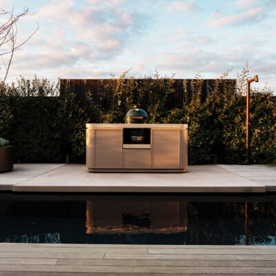 “Veel mensen denken bij buitenkeukens aan rvs of staal met coating”, vertelt de ontwerper. “Maar om vervorming tegen te gaan, heb je relatief veel staal nodig. Dat werkt prima voor een bankje. Maar in de praktijk moet een buitenkeuken vaak een stuk door een woning getild worden. Daar komen arbo-normen bij kijken, dus lichtgewicht is een enorm voordeel. Bovendien kun je eenvoudig te assembleren profielen maken van aluminium. Het liefst werk ik met mallen, maar dat is vaak te kostbaar voor start-ups met relatief kleine aantallen.”
